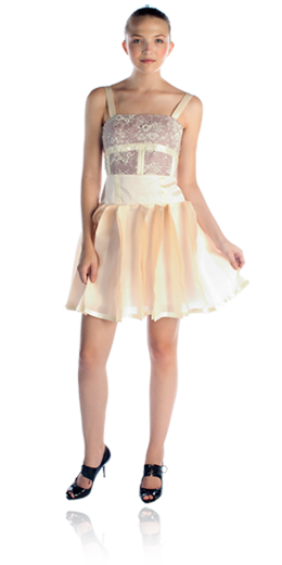nude Lace embroidered silk organza natural waist dress with bell skirt