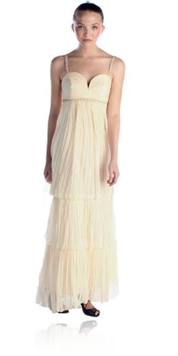 nude pleated silk chiffon strapless gown with draping and crystal embroidered belt