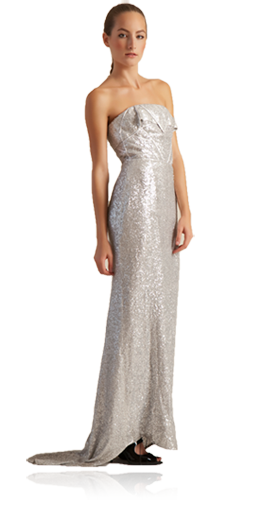silver embellished re-embroidered silk chiffon and sequence strapless natural waist gown with train