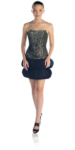 black embellished re-embroidered lace bodice and short tulip tiered skirt
