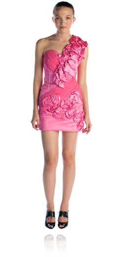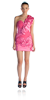 french rose pink silk organza strapless sweetheart neck dress with one shoulder