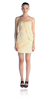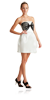 isabelline white silk organza halter dress with natural waist, lace detail and feathered skirt