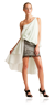 black embroidered lace and silk organza , asymmetrical off the shoulder dress