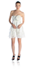 isabelline white strapless dress with hand tufted bodice, tiered and crystal embroidered belt