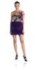 amethyst purple embellished lace and silk organza strapless dress with short tiered ostrich feather skirt